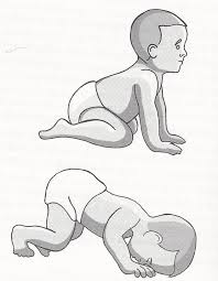 Până la vârstă de șase luni, cu condiția ca bebelușul să fi petrecut suficient timp stand pe burtă atunci când este treaz, copilul ar trebui să își poată susține greutatea corpului superior cu brațele. Aceasta înseamnă că, odată cu reapariția STNR, el este gata să se opună gravitației, ridicându-se pe mâini și genunchi. Cu toate acestea, de fiecare dată când își împinge capul în sus, brațele se îndreaptă și picioarele se îndoaie; dacă își pune capul în jos, brațele se vor îndoi și picioarele se vor îndrepta. Atâta timp cât apare această reacție, copilul nu poate integra suficient funcționarea corpului superior și inferior pentru a putea să se târască fără ca partea inferioară să fie tărâță în spate.