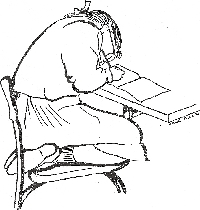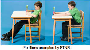 Copiii mici, în special fetele cu STNR neinhibat ale căror șolduri sunt mai flexibile decât ale băieților, au tendința de a sta așezate folosind o poziție a picioarelor în W. Când stă la birou, imediat ce copilul își îndoaie capul pentru a începe să scrie, brațele vor de asemenea să se îndoaie, ceea ce face dificilă menținerea unui bun control asupra posturii superioare a corpului. Pe măsură ce cresc în vârstă, copiii preferă să citească sau să scrie întinși pe burtă pe podea, în loc să stea pe scaun.